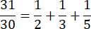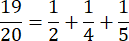 Odejmuj od podanego ułamka, ułamki, których w mianowniku są kolejne liczby, zaczynając od 2. Następnie wybierz te liczby, których równica jest dodatnia. Na końcu podany ułamek przedstaw w postaci sumy innych ułamków prostych.