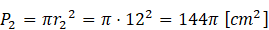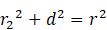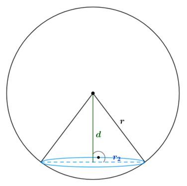Z rysunku odczytaj, że trójkąt o bokach r, d i r2 jest trójkątem prostokątnym.Na podstawie twierdzenia Pitagorasa wyznacz długość promienia przekroju (r2), a następnie oblicz jego pole (P2).