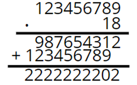 123456789 ∙ 18 = 2222222202