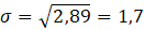 Odchylenie standardowe to pierwiastek kwadratowy z wariancji, czyli: