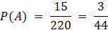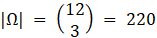Zbiór wszystkich zdarzeń elementarnych tego doświadczenia składa się z 220 elementów – wyciągasz 3 z 12 kul. Zdarzeń elementarnych sprzyjających zdarzeniu A jest 15 – losujesz 3 z 3 kul lub 3 z 4, lub 3 z 5. Otrzymasz więc