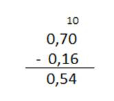 Aby odjąć pisemnie, podpisz liczby przecinek pod przecinkiem i postępuj jak z liczbami naturalnymi.