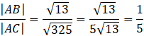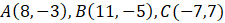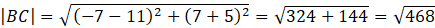Określ, w jakim stosunku są długości odcinków AB i BC, gdzie dane są punkty A(8, -3),B(11, -5),C(-7, 7).