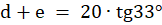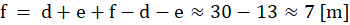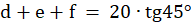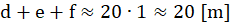 Wprowadzasz oznaczenia odcinków między punktami zaczepienia lin na maszcie kolejno od góry: f, e, d. Wykorzystując funkcję tangensa oraz znając kąty nachylenia lin do podłoża, obliczasz długości tych odcinków.