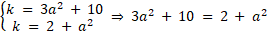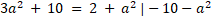 Wiedząc, że wyrażenia 3a2 + 10 i 2 + a2 przyjmują takie same wartości, wyznacz wartości a.