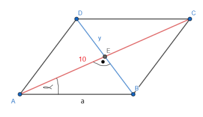 Wyznacz pole i obwód rombu, jeśli dłuższa przekątna ma długość 10, a jeden z kątów ostrych ma miarę 80°. Odpowiedzi podaj z dokładnością do 0,1.
