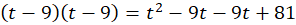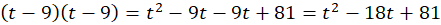 W tym zadaniu przedstaw wyrażenie (t - 9)(t - 9) za pomocą sumy algebraicznej.