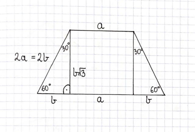 Dolna podstawa: b + a + b = a + a + a = 3a