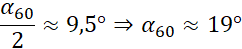 Wyznacz miarę rozwarcia stożka o kącie środkowym przekroju 60˚.