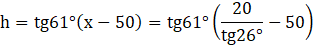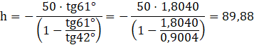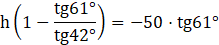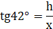 Wyznaczamy wartości funkcji trygonometrycznych, aby zawrzeć w tym stosunku szukaną długość. Wyznaczamy wysokość odczytując wartości z tablic i obliczamy.
