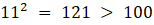 Liczba 11 jest najmniejszą liczbą, która podniesiona do kwadratu daje wartość większą niż 100.