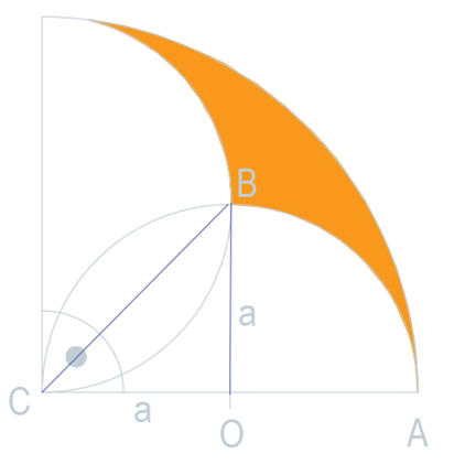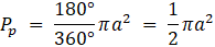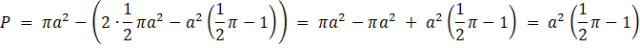 Zauważ, że pole części zamalowanej będzie równe polu wycinka o promieniu 2a minus pole dwóch półkul CBA bez części wspólnej. Więc: