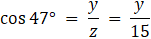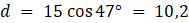 Skorzystaj z funkcji trygonometrycznych sinus i cosinus by wyznaczyć długości z i d