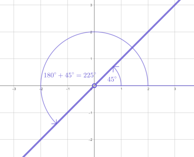 Zbiór wszystkich punktów P można więc przedstawić jako funkcję y = x, x ≠ 0. Punkt P leży na końcowym ramieniu kąta α, zatem ramię to musi pokrywać się z fragmentem wykresu leżącym w I lub III ćwiartce układu współrzędnych: