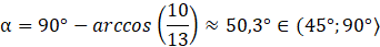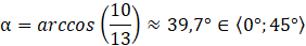 Wykorzystaj definicje funkcji trygonometrycznych, by obliczyć kąt dwuścienny: