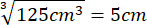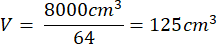 Oblicz długość krawędzi małego sześcianu, wiedząc, że objętość sześciennego klocka równa jest 8000 cm3, oraz że pocięto go na 64 małe sześciany o równych objętościach.