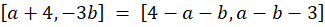 Aby wyliczyć wartości a i b od współrzędnych końcowych, odejmij współrzędne początkowe wektora