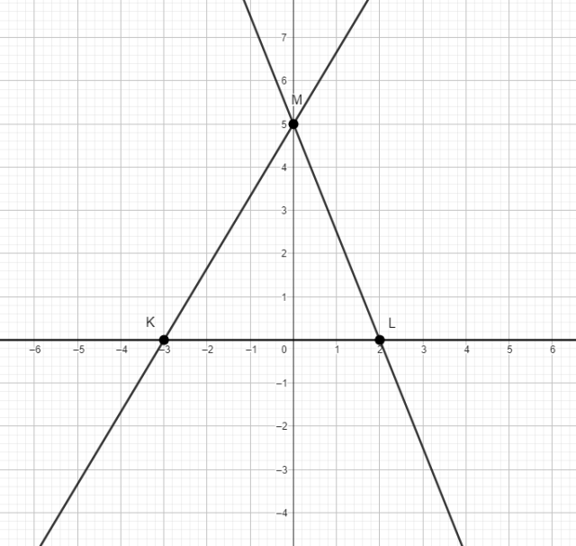 Trójkąt KLM leży nad prostą KL, a pod prostą KM oraz KL.