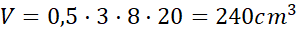 W tym zadaniu musisz obliczyć objętość graniastosłupa trójkątnego , jeśli przyprostokątne podstawy wynoszą 3 cm i 8 cm, a wysokość bryły to 20 cm.