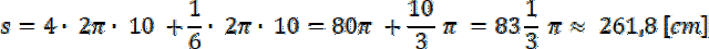 Oblicz długość trasy pokonanej przez punkt na końcu wskazówki minutowej zegara o długości 10 cm w ciągu 250 min.