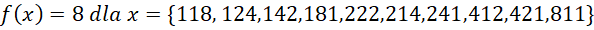 przyjmuje wartość 8, jeśli każdej trzycyfrowej liczbie naturalnej przyporządkowuje iloczyn jej cyfr, np.