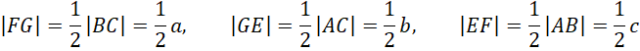 Skorzystaj z tego, że odcinek łączący środki dwóch boków trójkąta jest równoległy do trzeciego z nich i równy połowie jego długości.