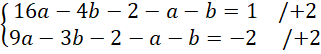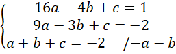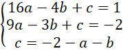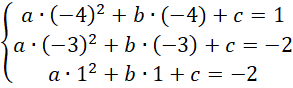 Znajdź równanie paraboli, o której wiadomo, że przechodzi przez punkty A(-4,1), B(-3,-2), C(1,-2).