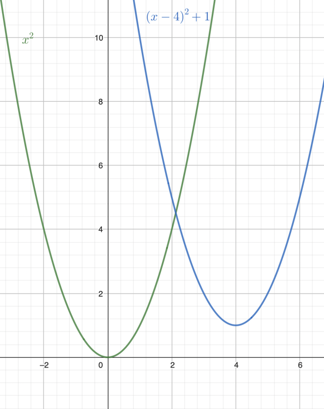 Aby narysować ten wykres musisz najpierw narysować wykres funkcji , a następnie przesunąć go o 4 jednostki w prawo i jedną jednostkę w górę.