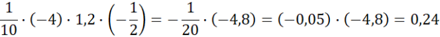 Pamiętaj, iloczyn liczb ujemnych jest dodatni, a iloczyn liczby dodatniej i ujemnej – ujemny. Pomnóż przez siebie ułamki zwykłe oraz ułamki dziesiętne. Zapisz wyniki w jednej postaci i wykonaj mnożenie.