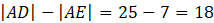 Oblicz długość boku AE stosując twierdzenia Pitagorasa i rozwiązując równanie . Oblicz długość odcinka DE jako różnica długości odcinków AD i AE. Pole prostokąta DFBE oblicz ze wzoru .