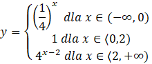 Następnie rozpatrz wzór funkcji w trzech przedziałach: