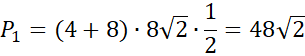 Promień okręgu poprowadzony do punktu styczności stycznej i okręgu jest prostopadły do tej stycznej. Zauważ, że zacieniowaną figurę można podzielić na dwa trapezy prostokątne. Oblicz pole jednego z tych trapezów korzystając ze wzoru