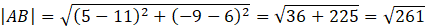Długości odcinków obliczamy stosujac wzór: