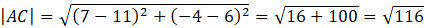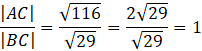Określ, w jakim stosunku są długości odcinków AC i BC, gdzie dane są punkty A(11,6),B(5, -9),C(7,-4).