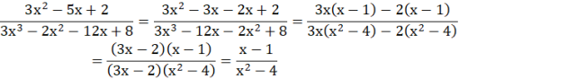 Zakładając, że wyrażenie w mianowniku jest różne od zera, możemy je skrócić po rozbiciu licznika na czynniki poprzez wyłączenie wspólnego czynnika przed nawias.