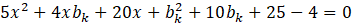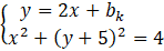 Zauważ, że z równania prostej masz od razu wyznaczoną zmienną y w zależności od x oraz bk. Aby uzyskać równanie z jedną zmienną wystarczy, że do równania okręgu za y podstawisz równanie prostej.