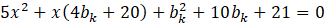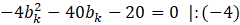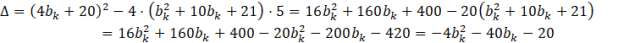 Dostałeś kolejne równanie kwadratowe. Pamiętaj, że jest to osobne równanie niż to które dostałeś z układu równań. Tam, było to równanie ze względu na x i jego rozwiązaniem była jakaś wartość x (czyli pierwszej współrzędnej punktu styczności). Natomiast tutaj zmienną jest bk i wynikiem będzie wartość właśnie tego współczynnika. Aby otrzymać wynik wystarczy, że rozwiążesz to równanie kwadratowe, przez przeniesienie wyrazu wolnego na drugą stronę.
