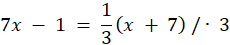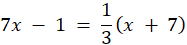 Wartość wyrażenia 7x - 1 ma być jedną trzecią wartości x + 7, więc: