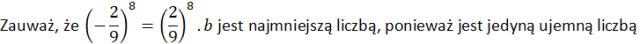 a jest liczbą dodatnią, ułamek właściwy c jest podniesiony do wyższej potęgi niż a więc jest mniejszy, a b jest liczbą ujemną.