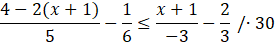 6(4 – 2(x + 1) – 5 ≤ -10(x + 1) – 20