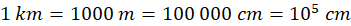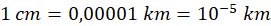 W tym zadaniu wstaw w luki odpowiednią potęgę liczby 10: 1 km = … cm, 1 cm = … km.