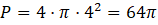 , gdzie r jest długością promienia koła. Od pola kwadratu, należy odjąć pola czterech kół.