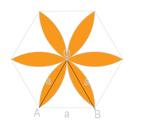 Pole zacieniowanego fragmentu jest równe różnicy pola wycinka koła o środku w punkcie b i pola trójkąta równobocznego AOB.