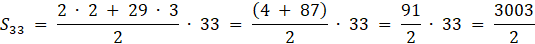 Największa liczba naturalna spełniająca tę nierówność to 33. Zatem suma 33 początkowych wyrazów tego ciągu wynosi: