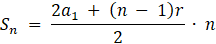 Szukaną sumę dodatnich miejsc zerowych funkcji możesz wyznaczyć, korzystając z informacji, że te miejsca zerowe tworzą dwa ciągi arytmetyczne o różnicy równej 3. Możesz zatem skorzystać ze wzoru na sumę n początkowych wyrazów ciągu arytmetycznego: