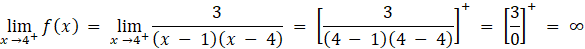 Granice jednostronne funkcji f w obu punktach są niewłaściwe, zatem proste