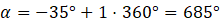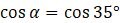 Dane jest wyrażenie cos α = cos 35°. Podaj wartości α mieszczące się w przedziale (180°; 630°), dla których jest ono prawdziwe.