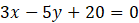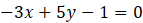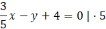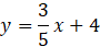 Mając daną prostą -3x + 5y – 1 = 0 oraz punkt A = (0, 4), wyznacz równanie prostej takiej, która przechodzi przez punkt A i jest równoległa do poprzedniej prostej.