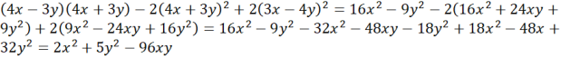 Przypomnij sobie wzory skróconego mnożenia i rozpisz nawiasy. Pamiętaj, że możesz wykonywać działania arytmetyczne na wyrazach o tych samych stopniach, czyli możesz zsumować