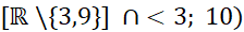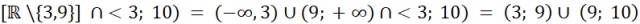 Na początku należy znaleźć różnicę zbioru liczb rzeczywistych oraz zbioru {3, 9}, a następnie znaleźć cześć wspólną tej sumy z przedziałem <3; 10).